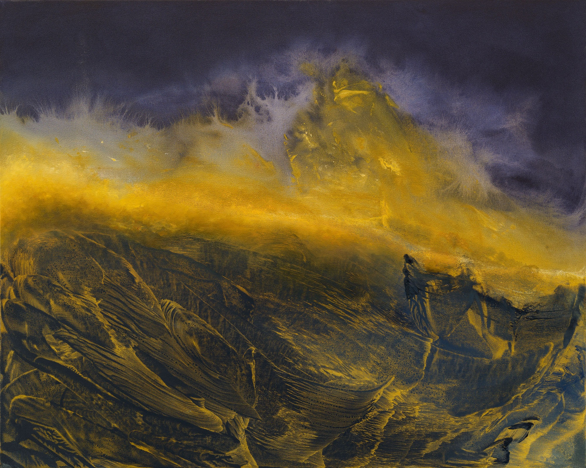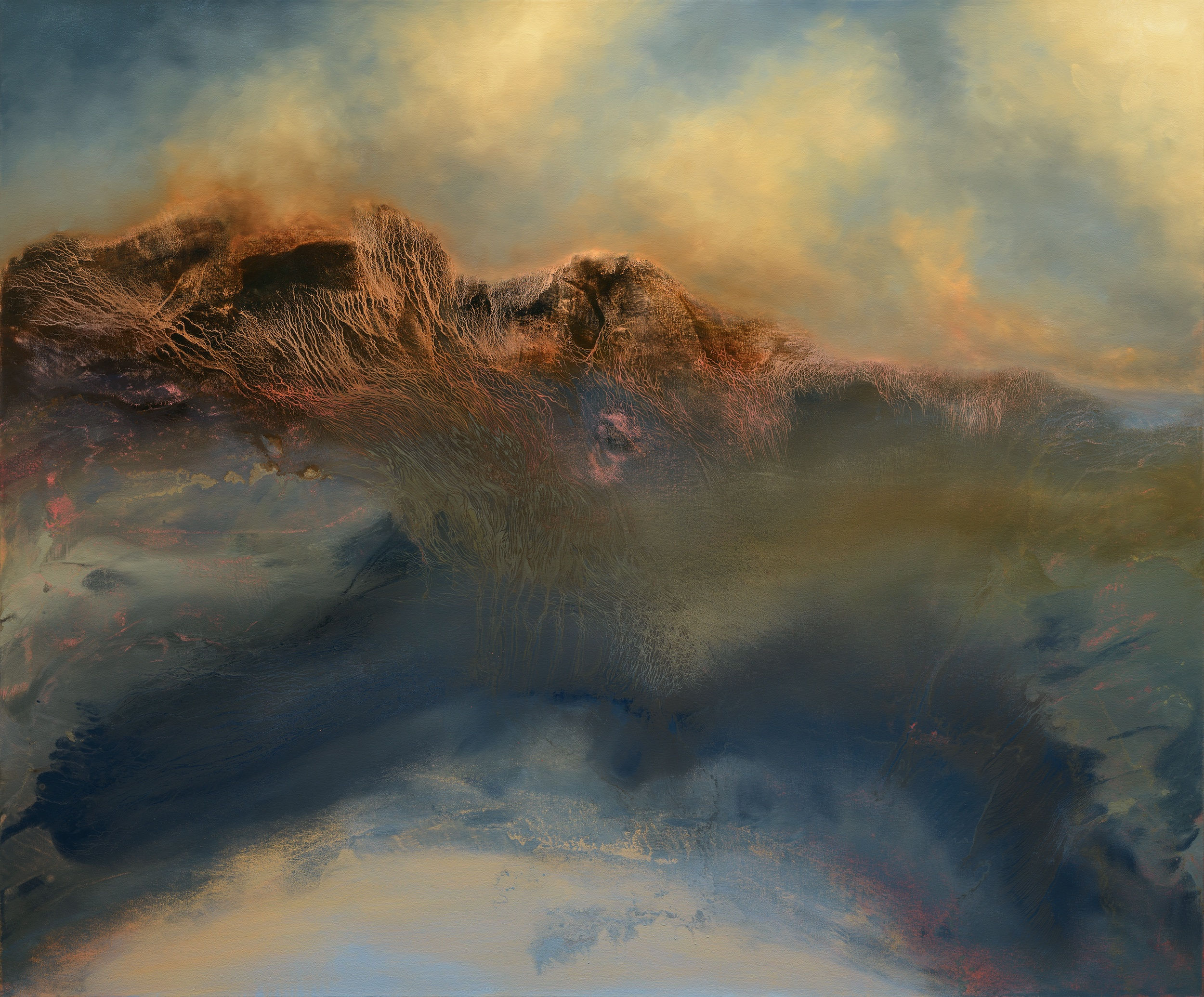 Samantha Keely Smith creates inspired and stirring abstract paintings in oil. The Brooklyn-based artist sees her paintings “as an expression of our internal turbulence. They reflect the overwhelming reality of being constantly aware of what is happening in the wider world – Change is the only constant.” Smith’s nebulous compositions are evocative of luminous cloudscapes and primordial oceans. Brilliant areas of stained pigment collide with waves of painterly brush strokes ultimately conjuring imagined environments with a timeless quality. “These paintings are about the essence of who we all are, as human beings… We all want love and connection.” Smith’s works give form to fluctuations between turbulence and calm present in everything from our emotions to the temporal world. Overall, Smith’s focus is on the underlying psychological impact of the dawning awareness of our shifting reality.