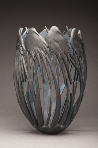 Layport coomments: "Working with wooden bowl and vessel forms provides a universal familiarity or jumping-off point from which I am able to express more complex themes and images. The instinct to make objects that address our connection to Earth, and to the creatures with whom we share this planet, is as timely today as it is timeless. Animal effigy figures have inspired utilitarian and ceremonial objects since the earliest forms of human expression. I'm simply bringing my own voice to this ongoing dialog."